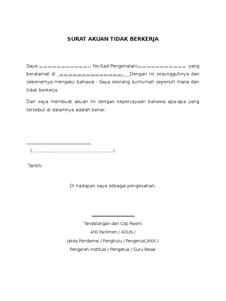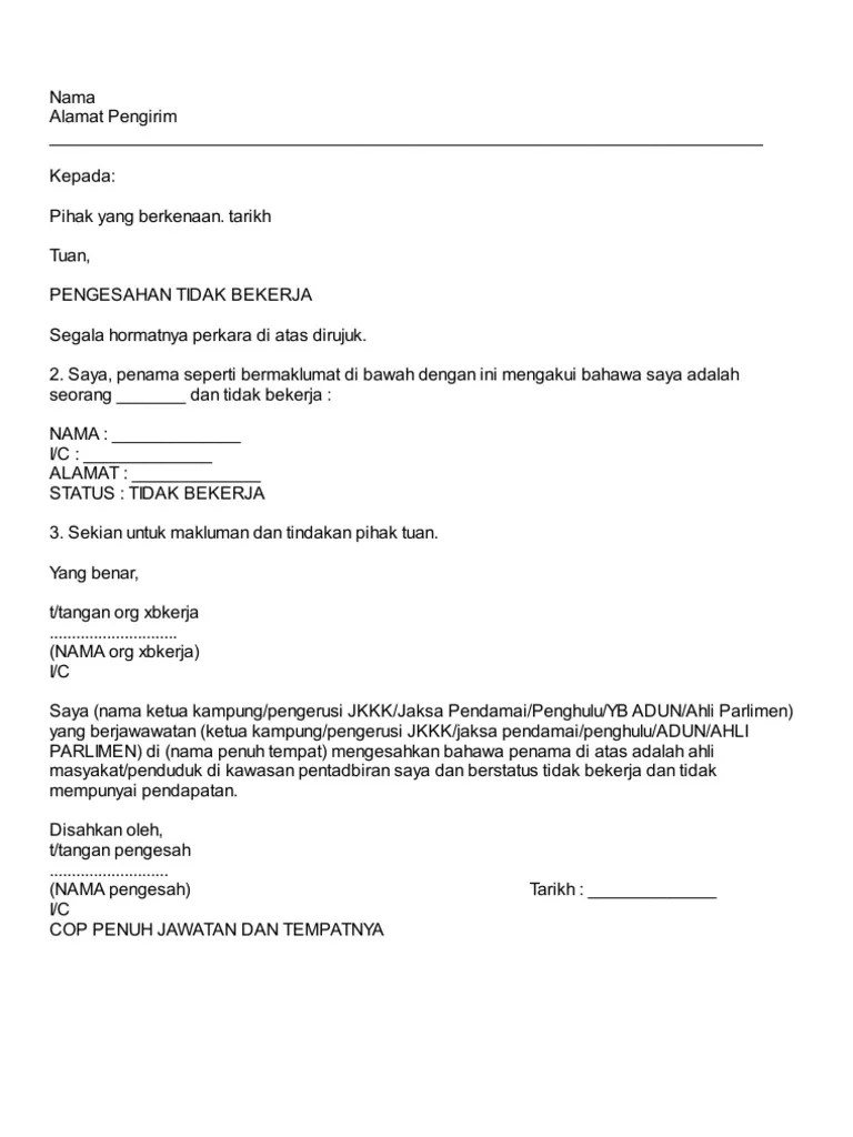 Surat Pengesahan Tidak Bekerja - Selain itu, surat ini pun menjadi syarat membuat kartu kredit, dan mengajukan pinjaman bank seperti kpr, kkb, serta kta.. Contoh surat pengesahan pendapatan adalah sebagai rujukan kepada individu atau pihak yang ingin mendapatkan pengesahan pendapatan seseorang bagi tujuan semakan. Berikut dikongsikan contoh surat meliputi surat pengesahan jawatan buat panduan semua. Contoh surat permohonan rekomendasi camat tentang pengangkatan … Umur maksimum bagi pelanggan yang berkhidmat sebagai pegawai polis adalah 55 tahun. Surat permohonan rekomendasi pengangkatan perangkat desa adalah surat permohonan secara tertulis yang diajukan oleh kepala desa kepada camat untuk meminta atau memohon agar diberikan rekomendasi pengangkatan perangkat desa hasil penjaringan dan penyaringan calon perangkat desa.